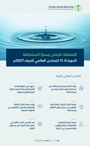 السعودية تتقدم بطلب استضافة الدورة الـ ١١ للمنتدى العالمي للمياه ٢٠٢٧